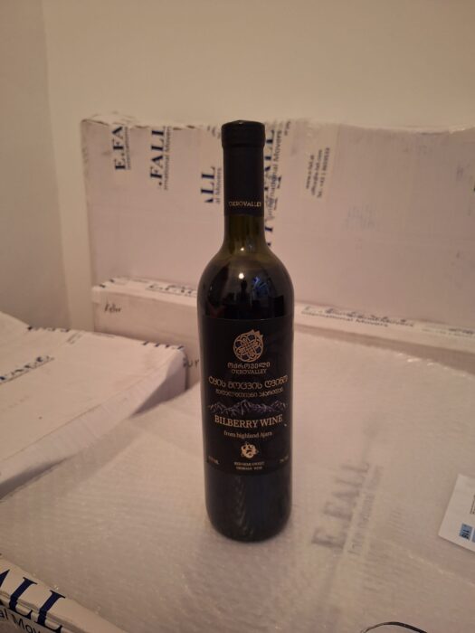 Na sua mais recente viagem à Geórgia, trouxe-me um vinho curioso: Bilberry Wine. Um vinho muito frutado, doce, mas com um final ácido. O sabor a mirtilos é claro e intenso, com uma cor vermelha escura que impressiona.