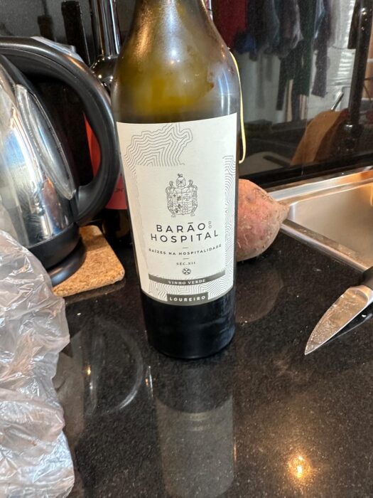 Para acompanhar esse desejo, abri uma garrafa de Barão do Hospital, um vinho branco da região dos Vinhos Verdes, super agradável.