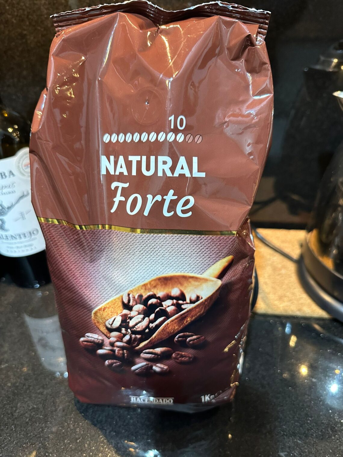Há dois anos fui de férias para o sul de Espanha. Muito perto do hotel onde fiquei hospedado havia uma loja Mercadona. Nunca tinha visitado esta cadeia, não conhecia, e por isso, entusiasmado, fui lá várias vezes. Numa dessas compras, decidi levar um quilo de café de um lote chamado Natural Forte, um produto exclusivo das lojas Mercadona. Com o tempo, o café foi ficando para trás, porque fui experimentando outras marcas e sabores que me despertavam mais curiosidade. Este café é da marca Hacendado e vende-se apenas no Mercadona. Passados dois anos, decidi finalmente abrir o pacote. O aroma é discreto, mas o sabor revela-se intenso e com muito corpo. Está disponível moído e em grão; eu optei pelo grão. No final, sente-se um ligeiro toque a madeira, prolongado e elegante. Tem o amargor típico dos cafés intensos, não é recomendável para quem está a dar os primeiros passos…