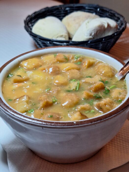 A entrada fez-se sob o olhar cúmplice do Convento, mas foi a cozinha que verdadeiramente se impôs. Comecei por aquela que não poderia deixar de ser provada: a sopa rica do mar, herança direta da casa-mãe. Chegou fumegante e generosa, um verdadeiro altar ao mar.