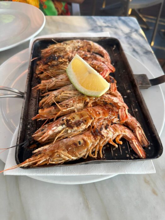 A entrada: camarões na chapa, fresquíssimos e deliciosos, uma verdadeira pérola de sabor.