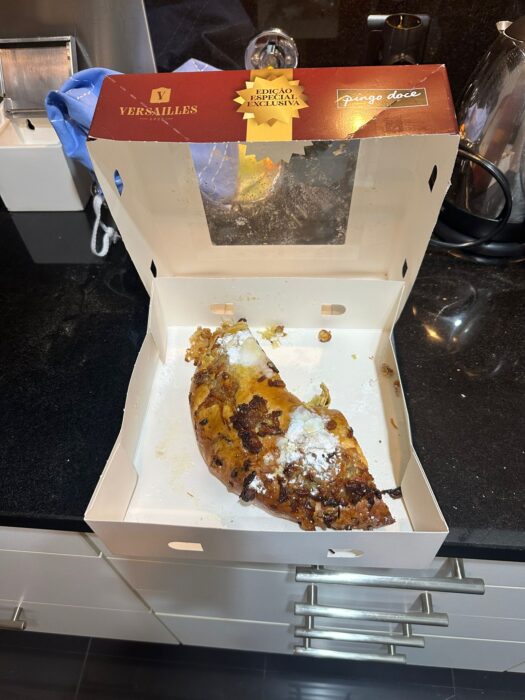 No ano passado, a cadeia de supermercados começou a vender o bolo-rei da Versailles e, este ano, chegou também o bolo-rainha. Sou grande fã deste bolo e, por isso, no domingo passado, numa visita ao Pingo Doce, decidi comprar.